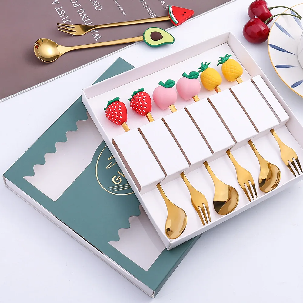 4 stücke/6 stücke Nette Puppe Gabel Löffel Geschenk Geschirr Set Obst Löffel Gab...