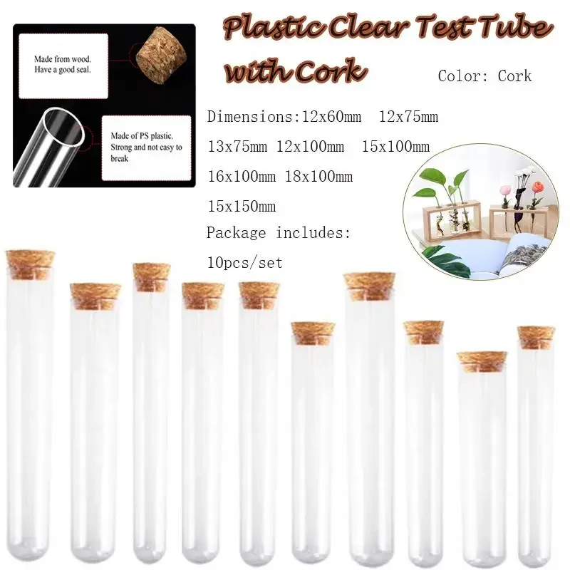 10 teile/satz Transparent Kunststoff Reagenzglas mit Korken Deckel ...