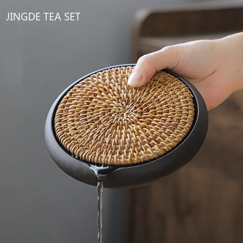 Handgewebte Rattan Lila Ton Wasserkocher Basis Tee Tablett Trockene Blase Teekanne Kissen Wärme...