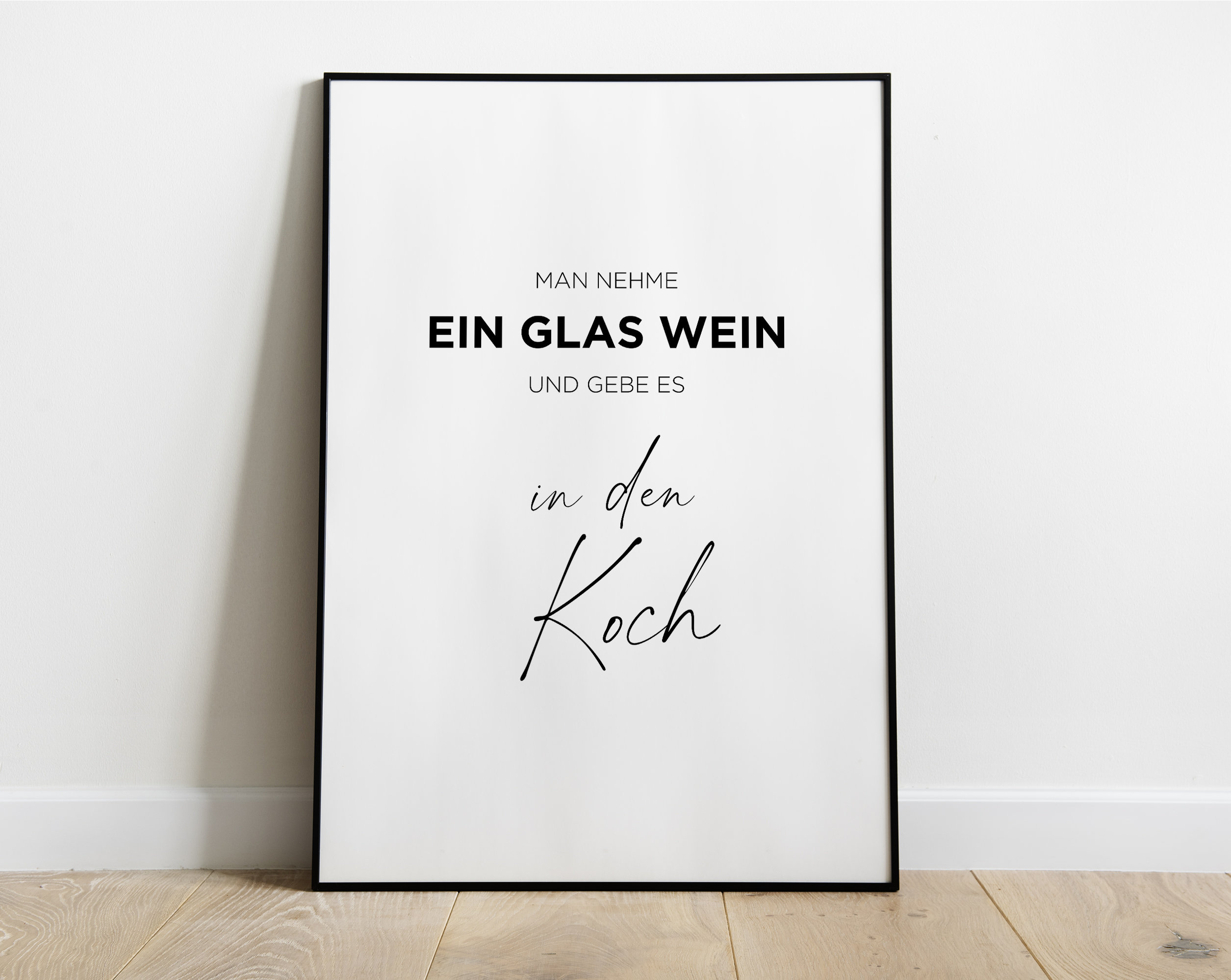 Was gibt es Schöneres als ein schönes Glas Wein beim Kochen? Das schlichte aber humorvolle...