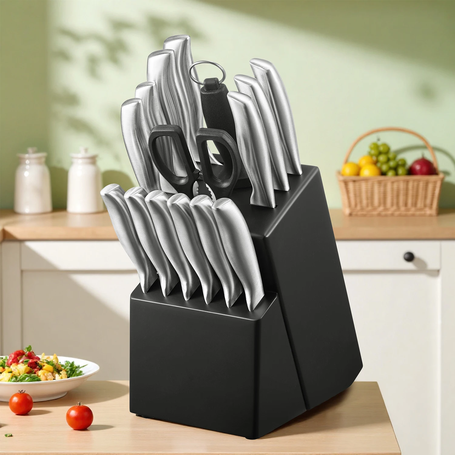 Kitchen Knife Set, 16 Pieces German Stainless Steel Knife Block Set, Ultra Ultra- Sharp Cutlery Knif...