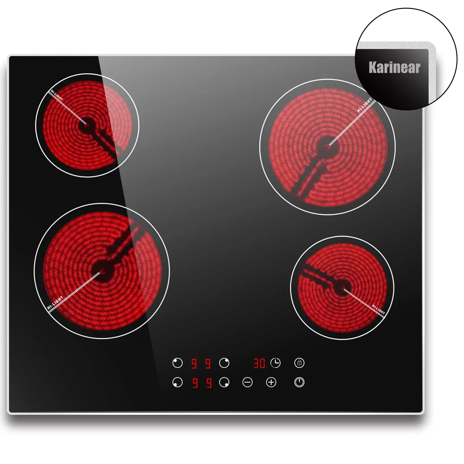 Autonome Glaskeramik-Kochfeld 60 cm, Karinear-Kochfeld mit Rahmen, 6000 W Keramik-Kochfeld, 4 Platte...