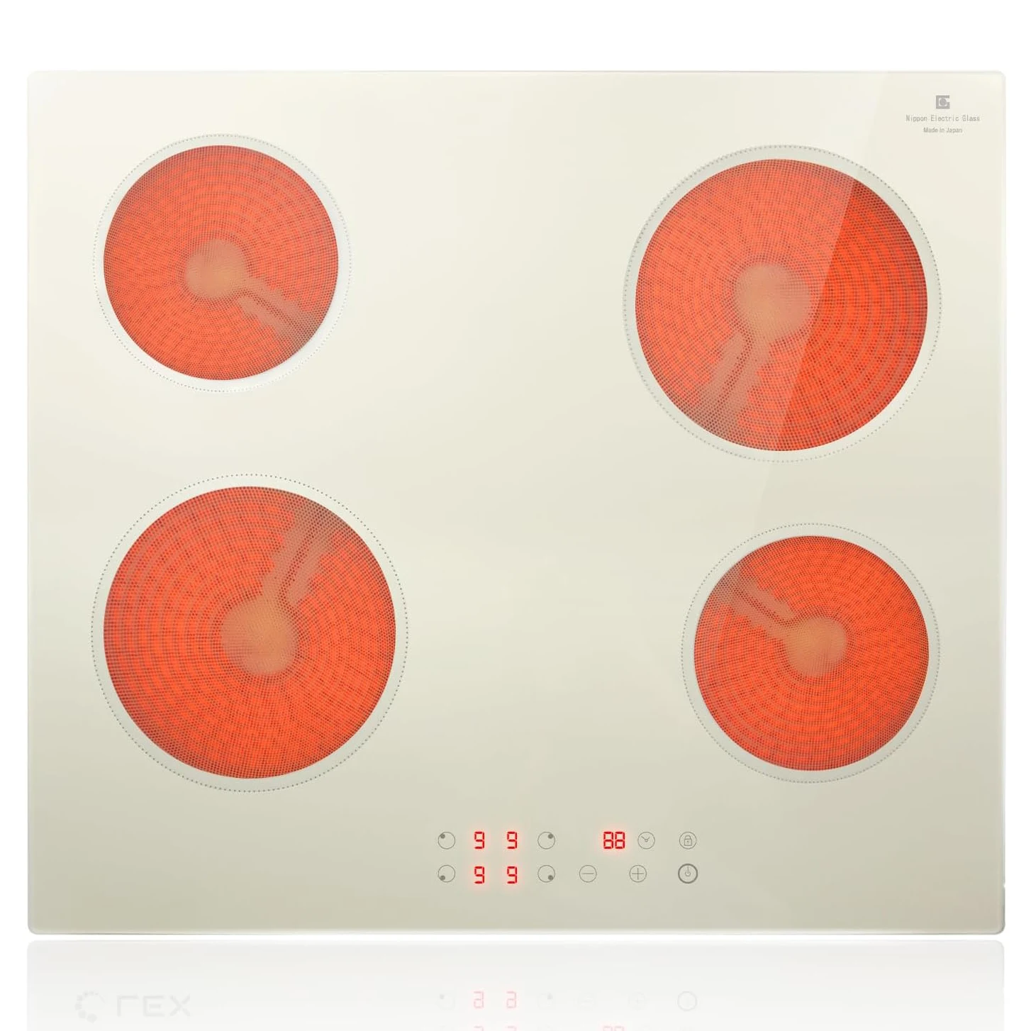 NOXTON Weißes Keramik-Kochfeld, 4-Zonen-Elektrokochfeld, 60 cm, Touch-Steuerung mit Timer, sic...