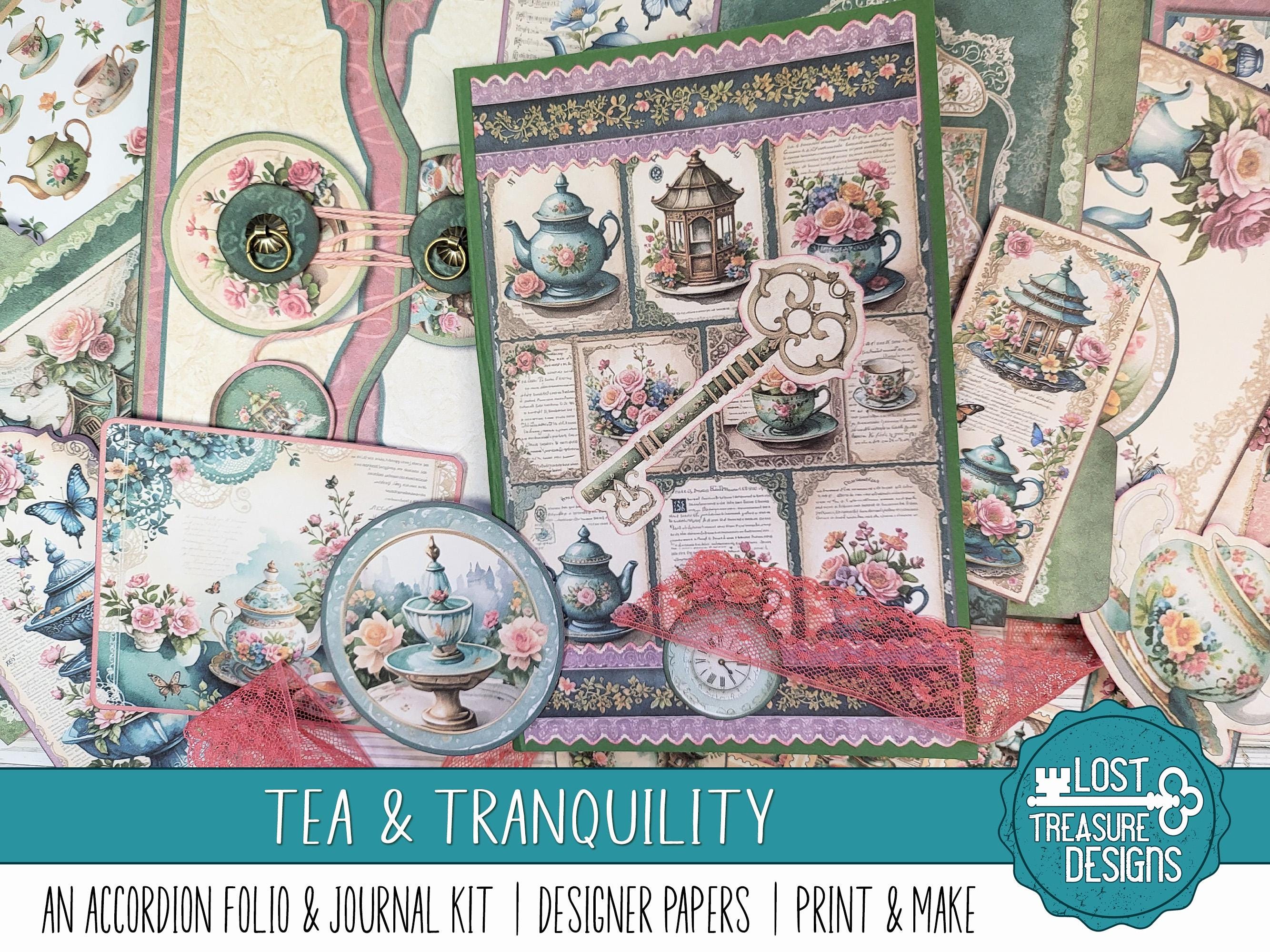 TEA & TRANQUILITY: Accordion Folio und Junk Journal Kit. Verzie...