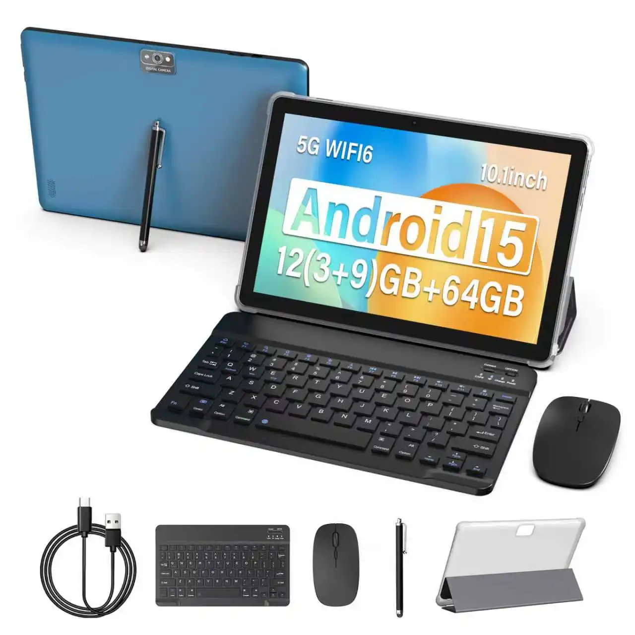BAKEN Android 15-Tablet, 12 (3+9) GB + 64 GB Speicher, Quad-Core-Prozessor, WLAN 6, Bluetooth, USB-C...