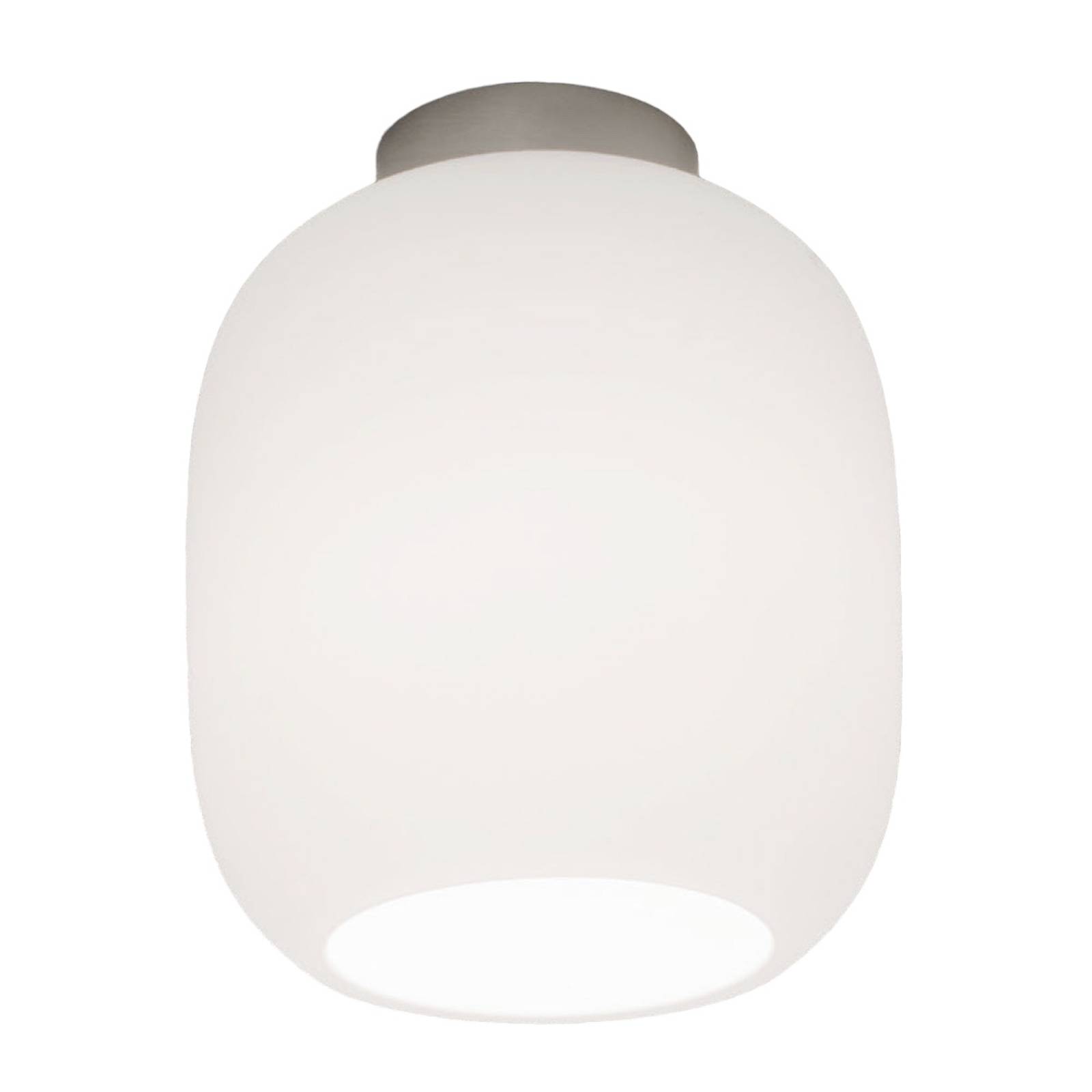 Ein mundgeblasener, kipp- und drehbarer Glasschirm und ein runder Wandteller aus Aluminium zeichnen ...