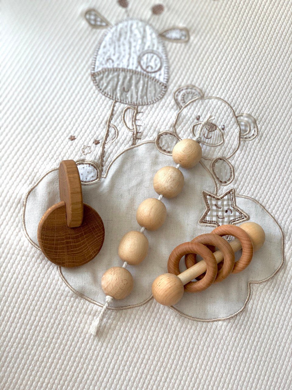 Diese Packung enthält folgende drei Spielzeuge: Interlocking Discs Holz-Babyrassel Baby Greifpe...