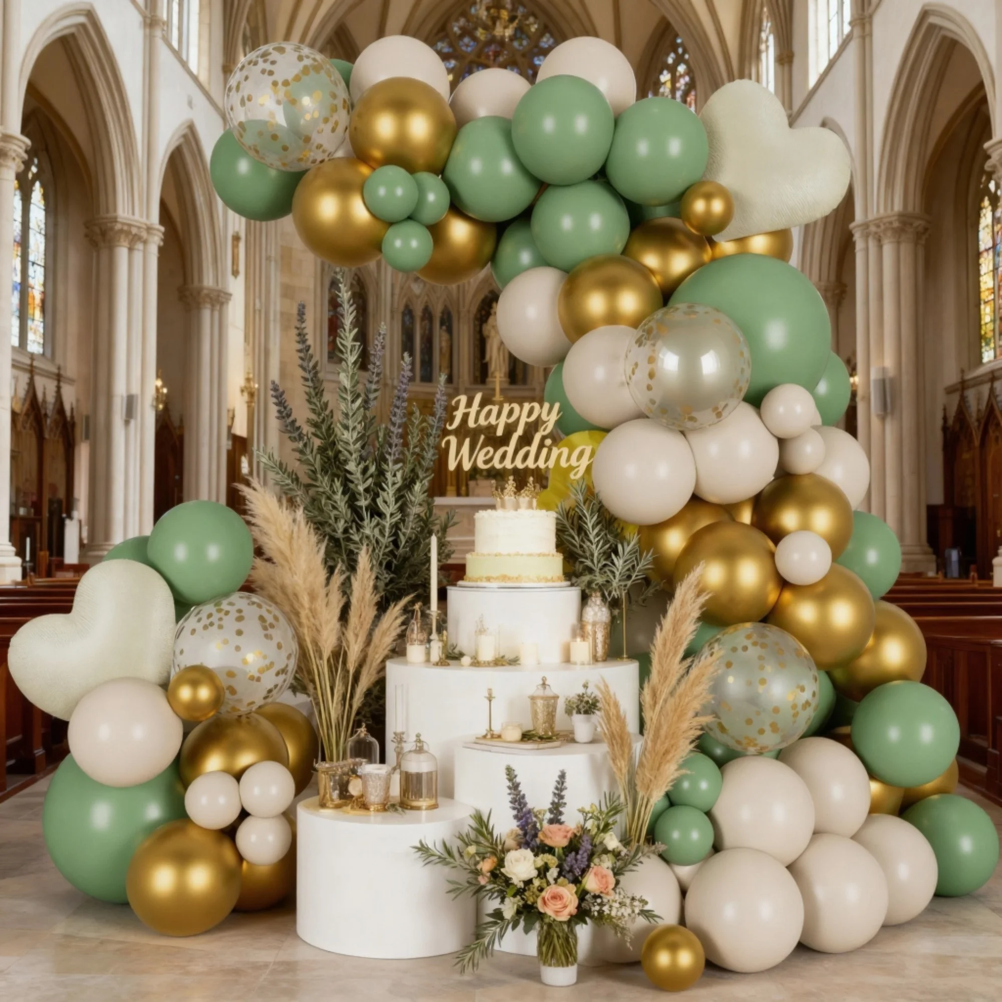 118-teiliges Party-Luftballon-Set, Goldherzen, cremefarbene Herzen und goldglitzernde Ballons, gepaa...