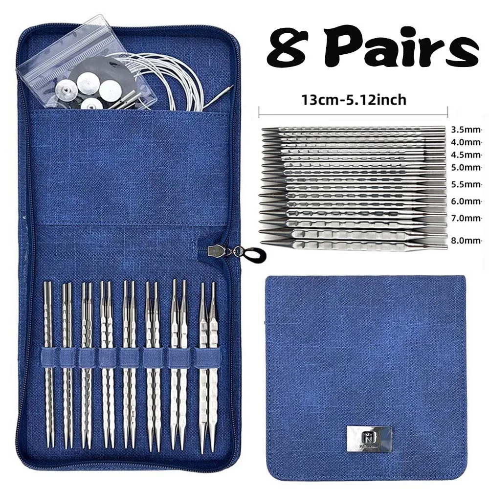 13 cm austauschbares Hohlwürfel-Rundstricknadel-Set, 3,5–8,0 mm Edelstahl-Webgarn, Bastel...