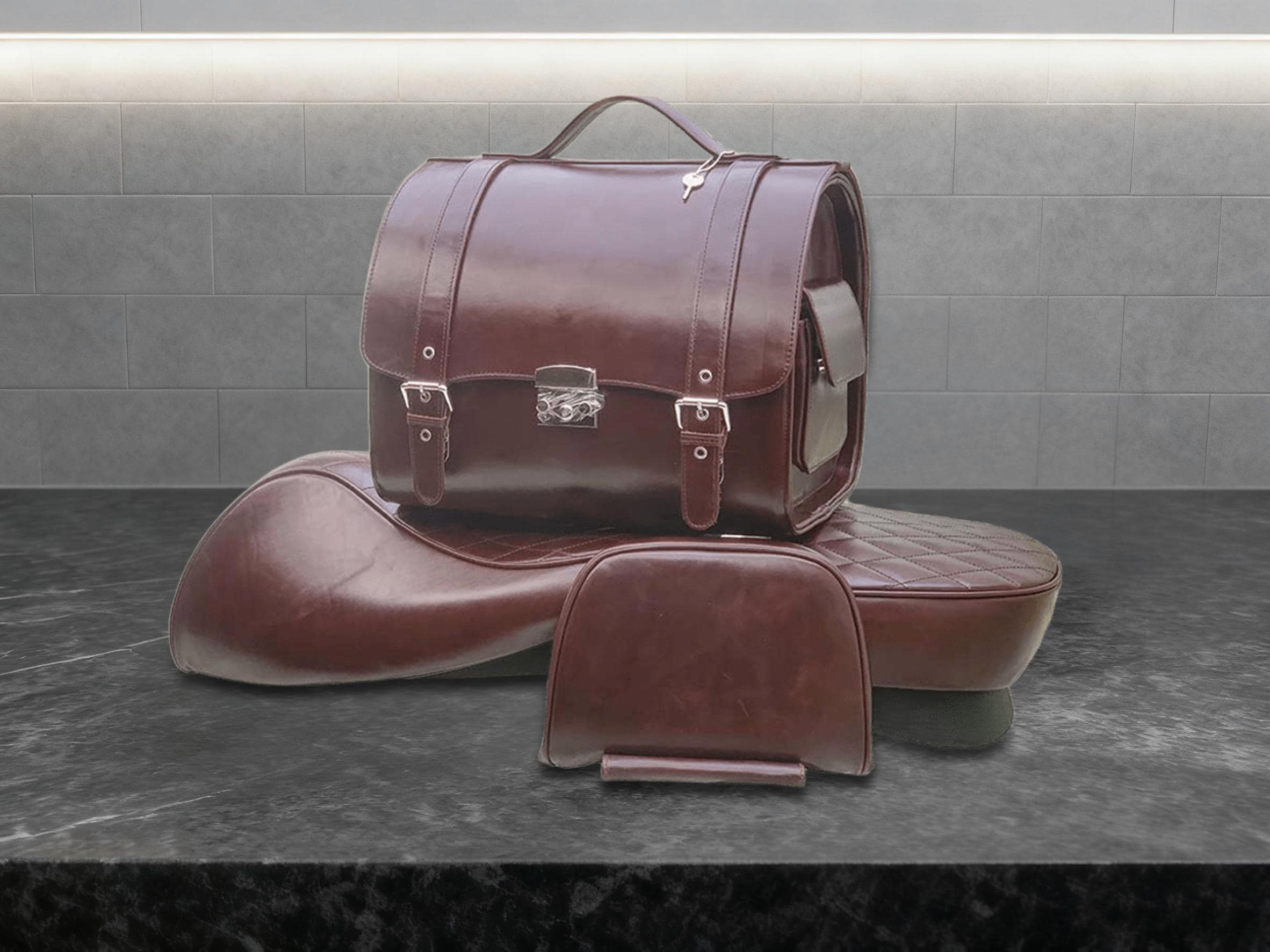Vespa Set - Rot Braun, Vespa Sitzbezug, Beuteltasche, Boxtasche, He...
