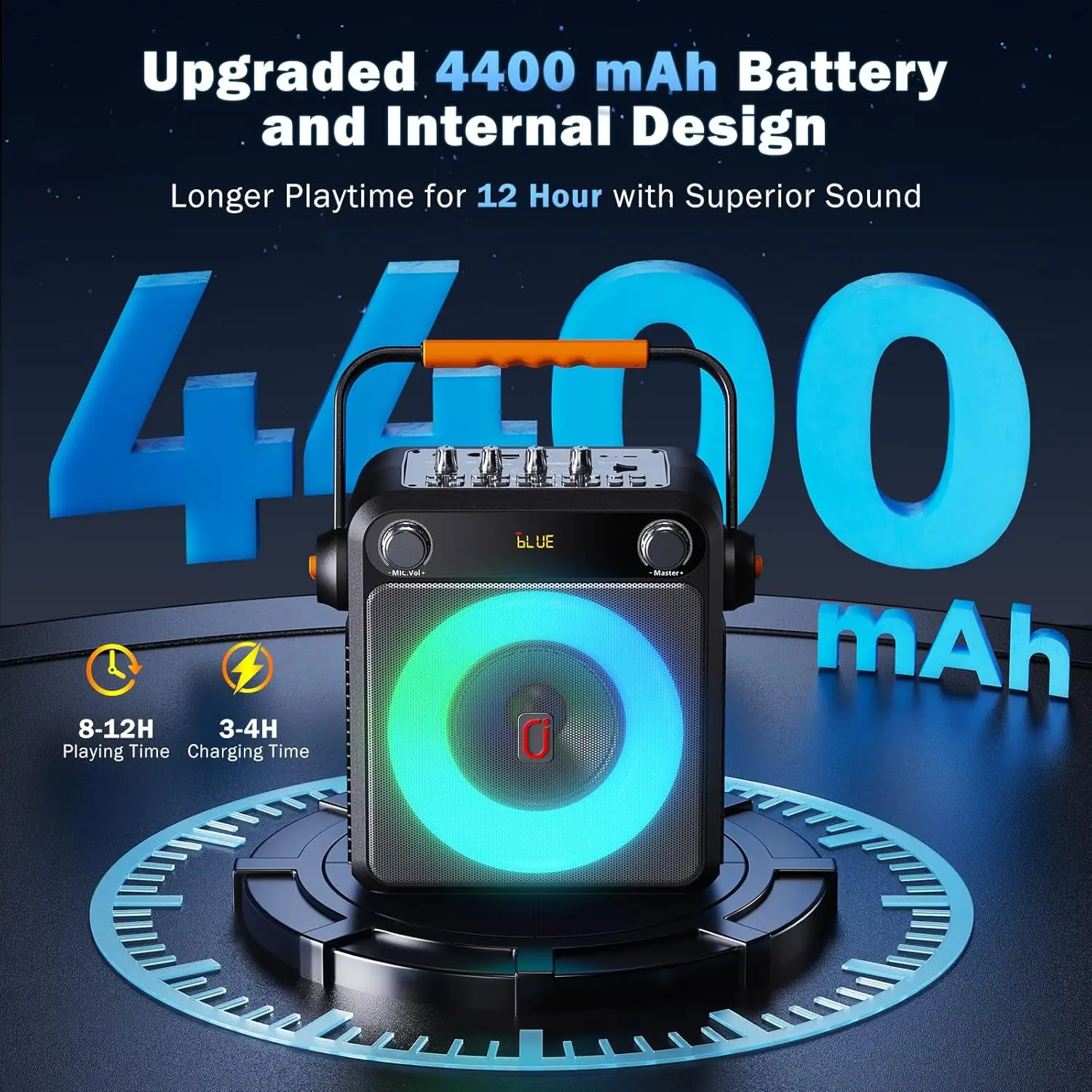 4400-mAh-Karaoke-Maschine mit 2 kabellosen Mikrofonen, Karaoke-Mikr...