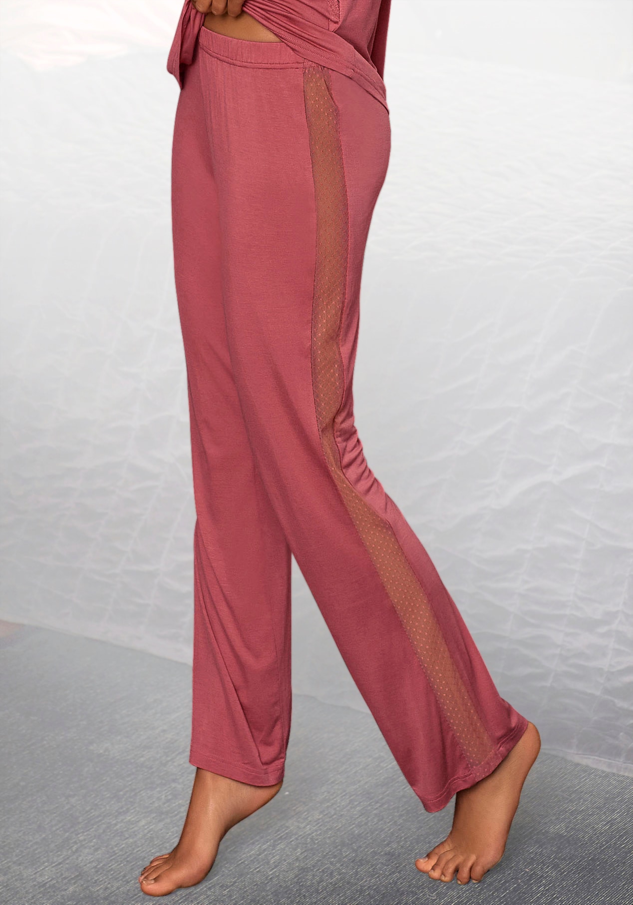 Lange Pyjamahose von Lascana. Mit elastischem Bund und seitlichem Spitzeneinsatz entlang der Seitenn...
