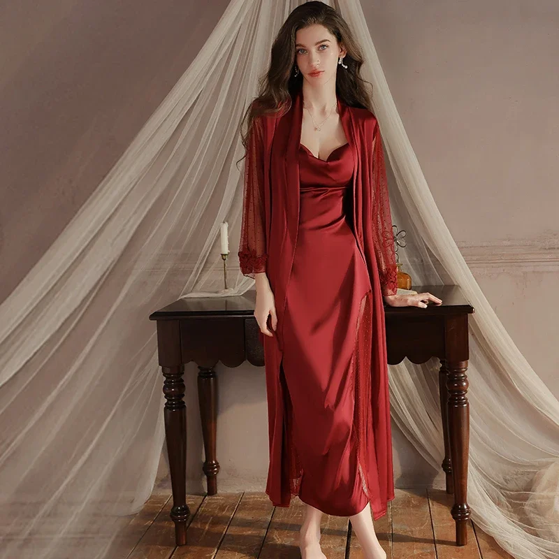Elegantes langes Nachthemd Home Kleidung Neue weibliche Nachtwäsche Nighty Sexy Perspektive Spi...