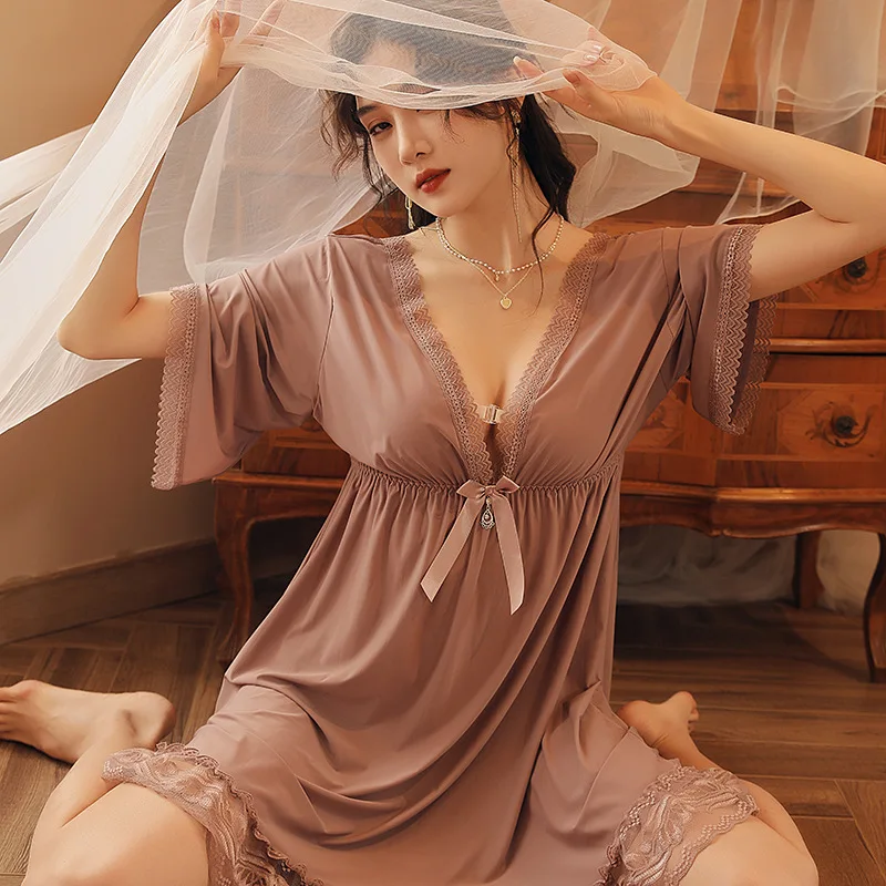 Fdfklak M-3XL Damen-Nachthemden, sexy Spitze, tiefer V-Ausschnitt, ...