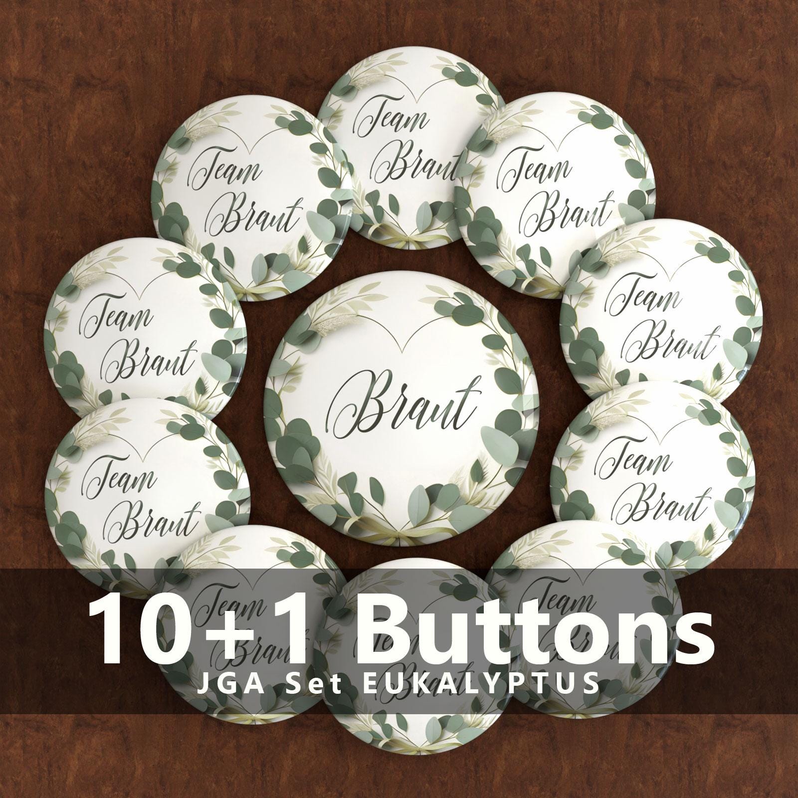 JGA Button Set Eukalyptus - Braut & Team Braut Buttons | Jungge...