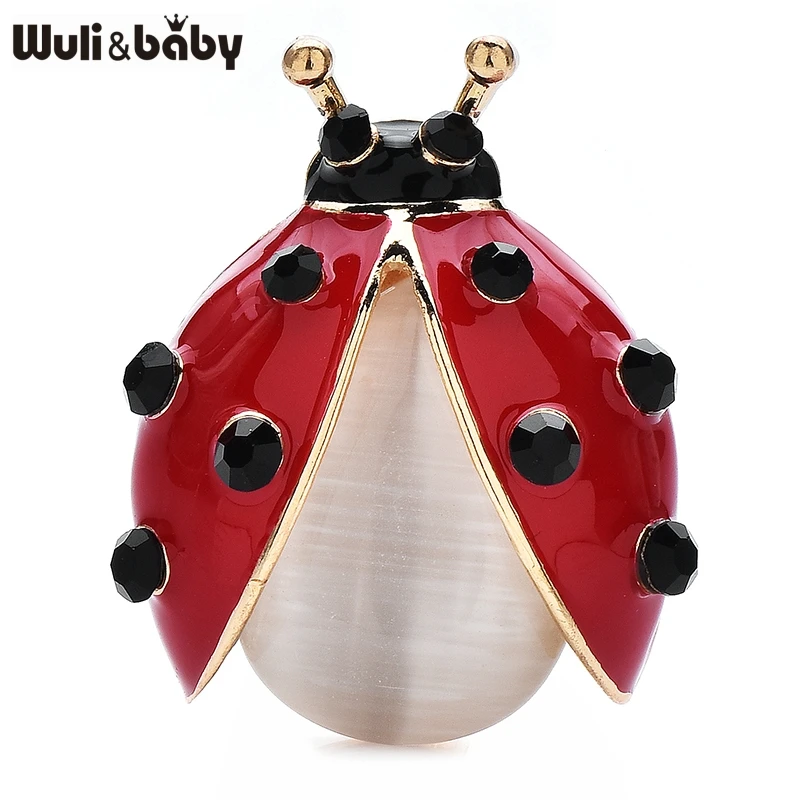 Wuli&baby Niedliche Marienkäfer-Broschen für Damen, Unisex, Opal, rot, Emaille, Kä...