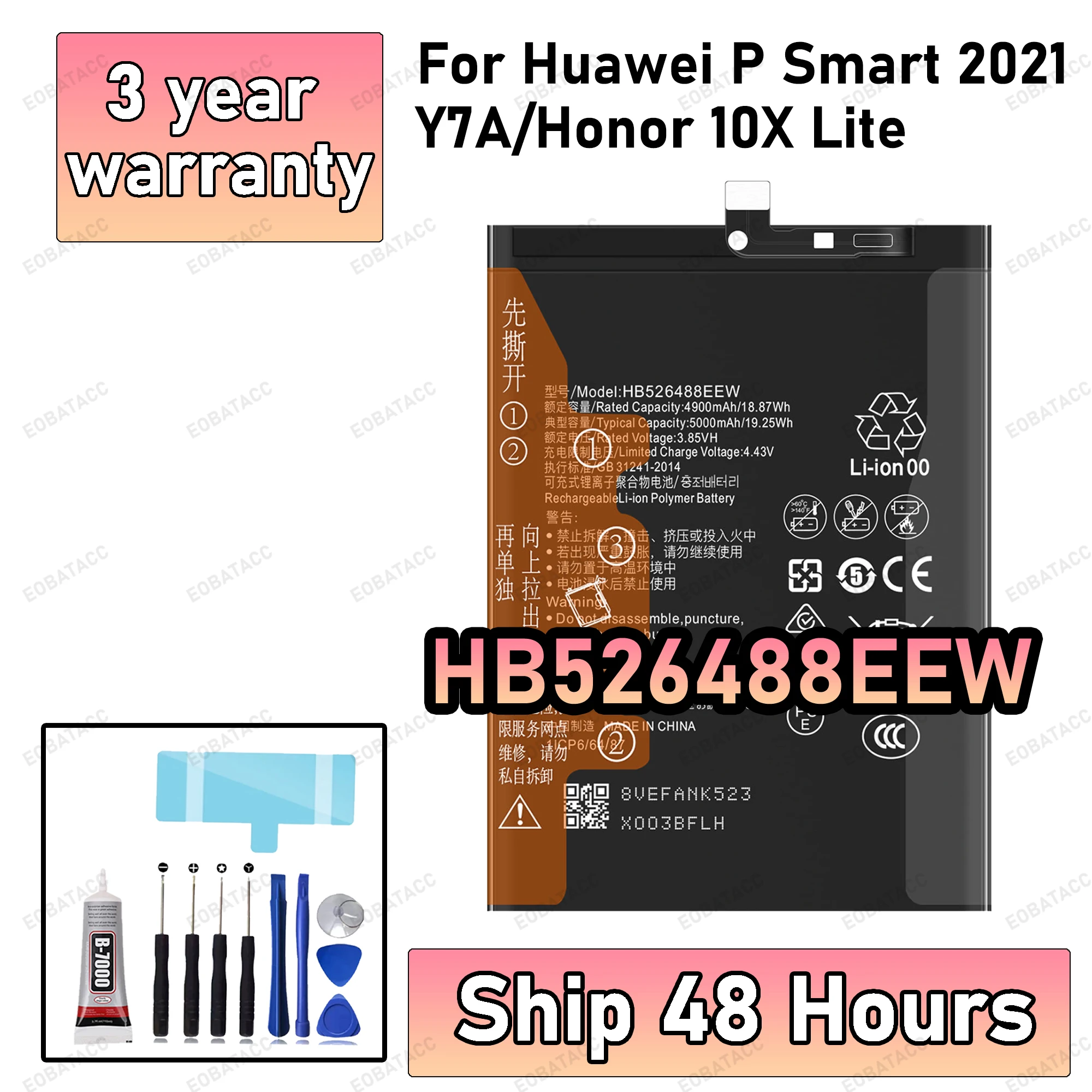 100 % neuer hochwertiger Ersatzakku HB526488EEW für Huawei P Smart 2021/Y7A/Honor 10X Lite Batt...