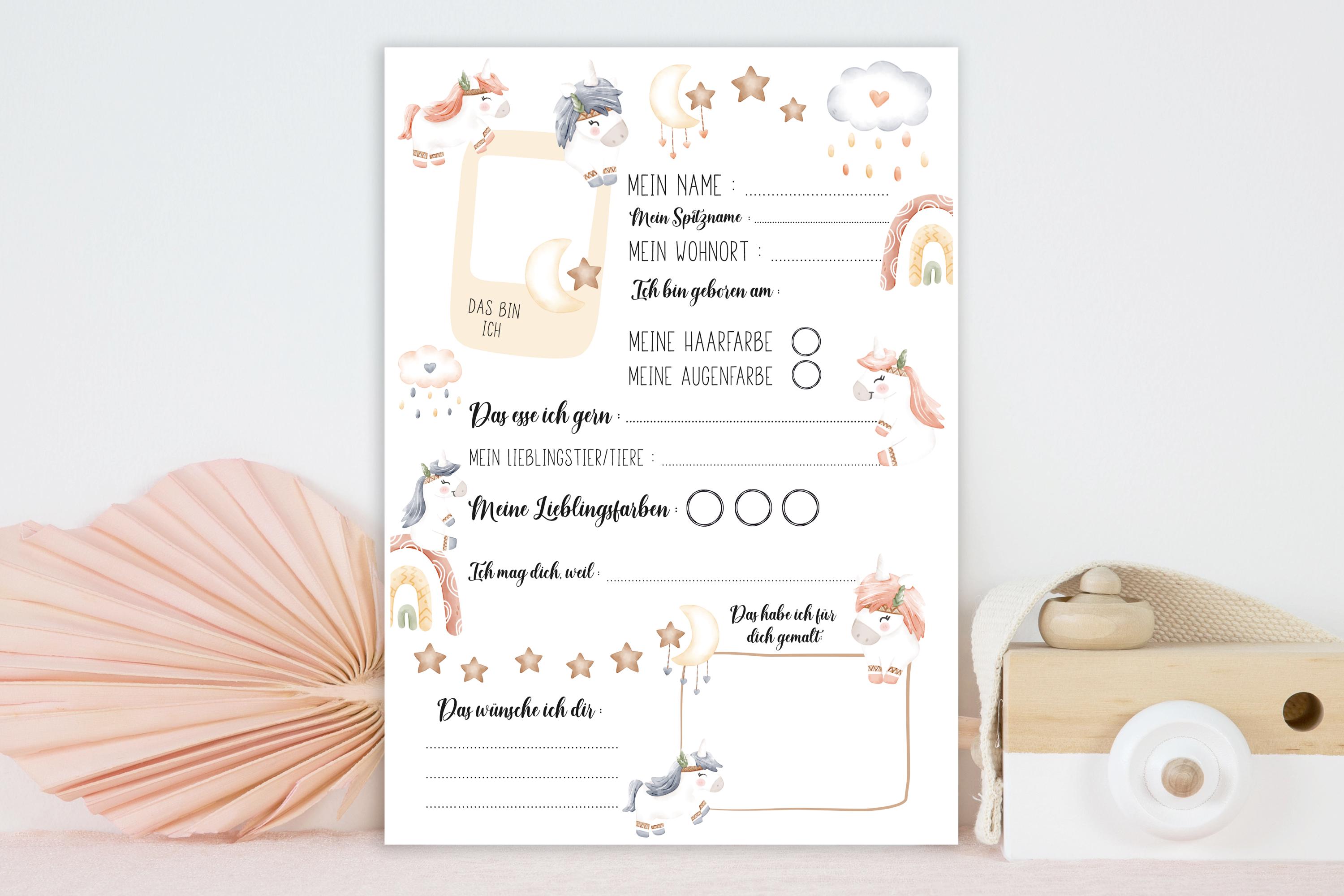 Freundebuchseite Kind an Kind DIN A4 boho Einhorn, perfekt für...