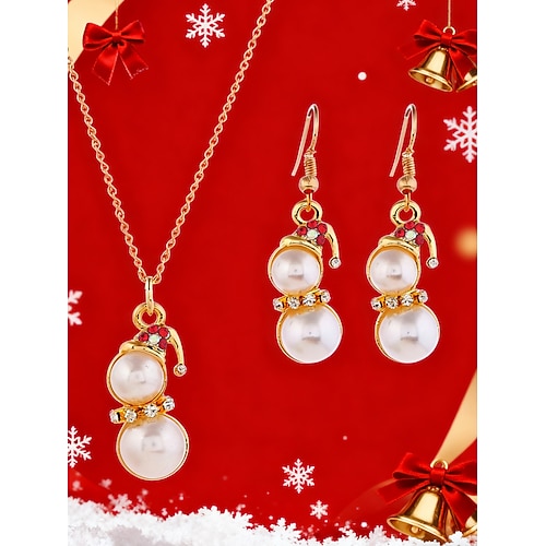 Damen Schneemann Perlenschmuckset, 2-teilige Halskette und Ohrringe...