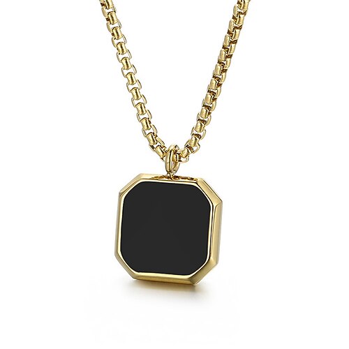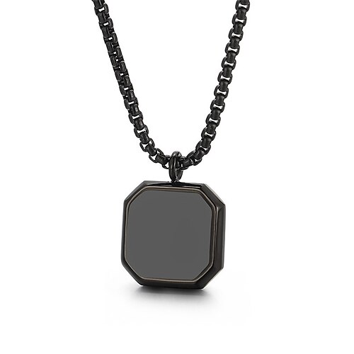 Schwarze Herren-Halskette mit quadratischem Anhänger aus Edels...