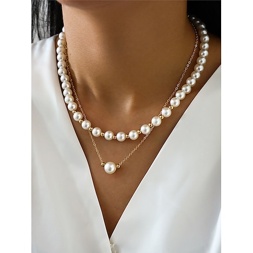elegante mehrreihige Perlenkette für Damen – Goldkette m...