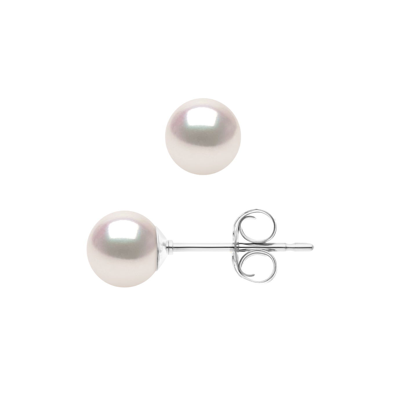 Ohrringe - ECHTE ZERTIFIZIERTE AKOYA ZUCHT PERLEN Runde Form 5,5-6 mm - Qualität AA+ - Hoher Gl...