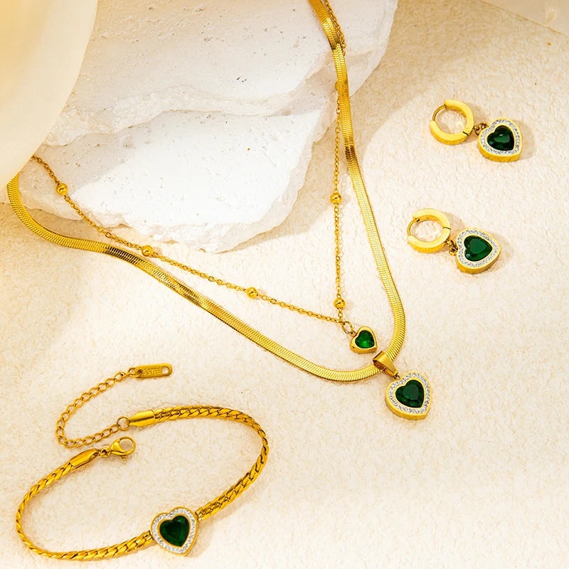 Anenjery 316l Edelstahl Smaragd Liebe Herz Halskette Armband Ohrrin...