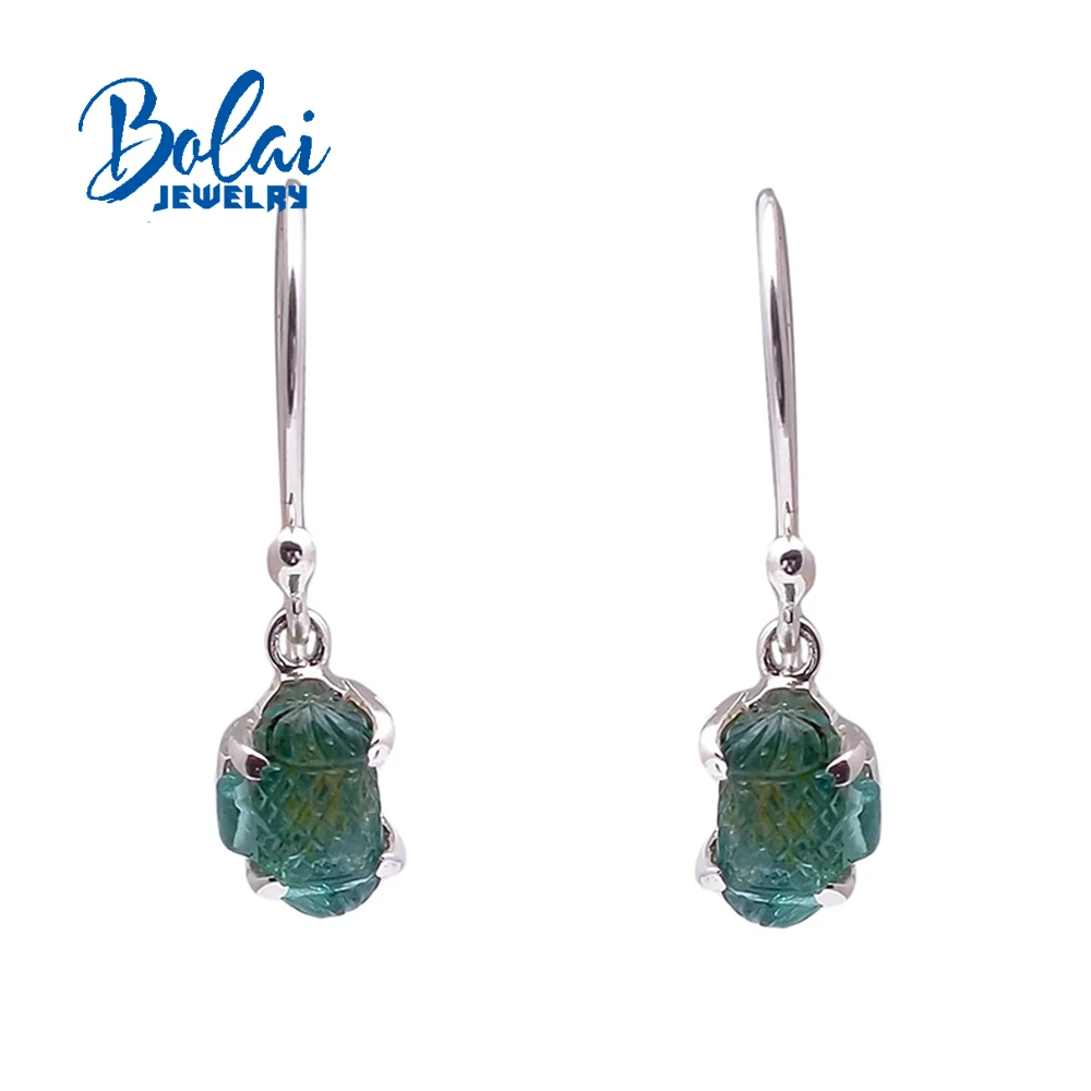 Natürlicher Smaragd-Haken-Ohrring aus Sambia, handgefertigter Edelstein, Schmuck, Gravur, Smara...