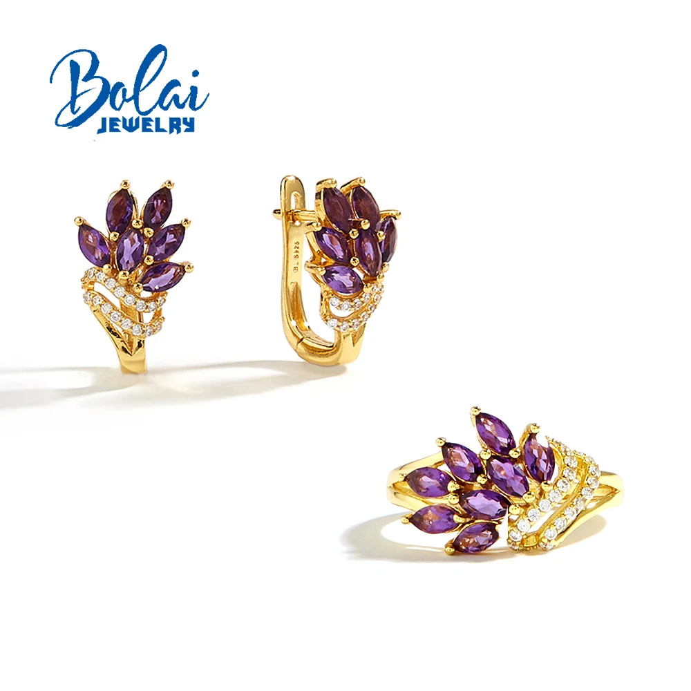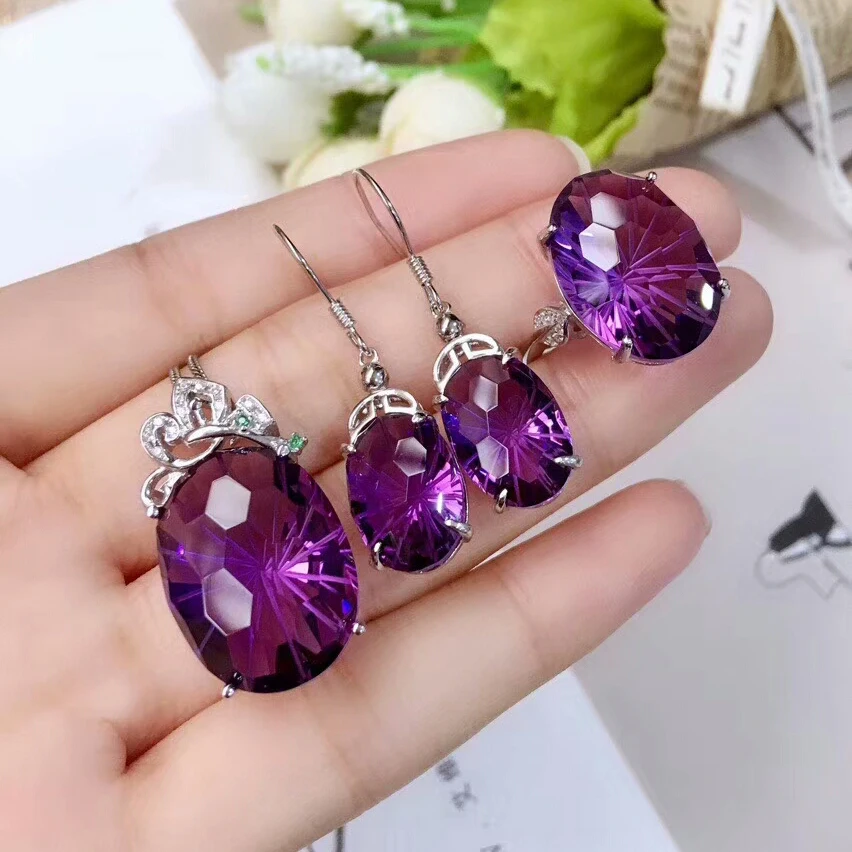 MeiBaPJ Natürliche Hohe Qualität Amethyst Edelstein Feine Hochzeit Schmuck Set 925 Reinem ...