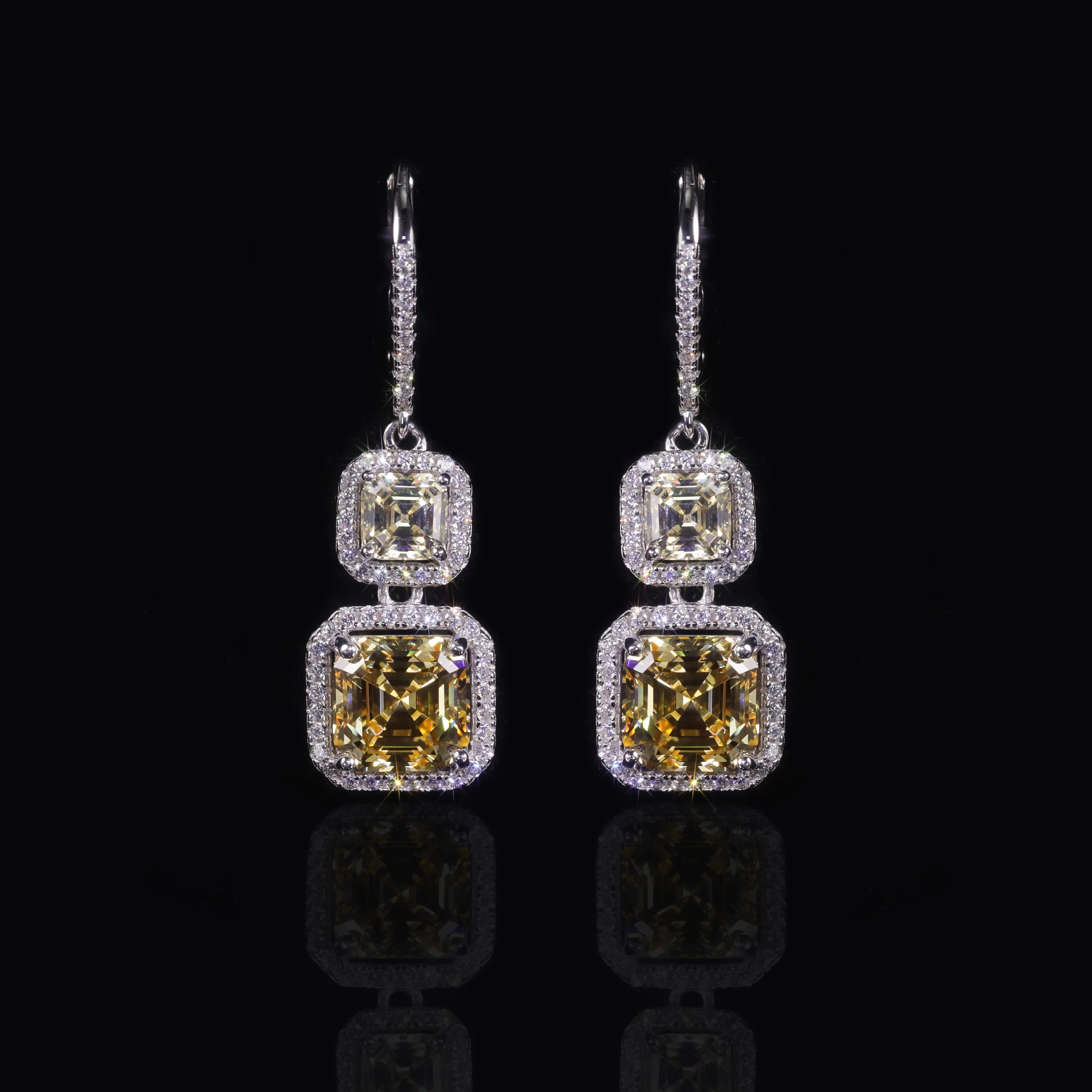 Gem's Ballett 925 Sterling Silber Diamant-Feuer cz-ausgefallene hellgelbe Luxus Ohrring Party Kö...