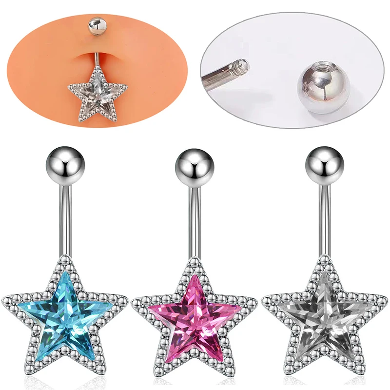 Kristall Anhänger Bauchnabel Ring für Frauen Stern Zirkon Nabel Ring Schmuck Pentagramm Ba...