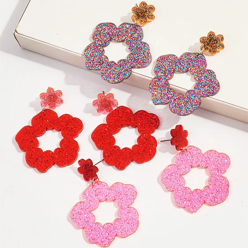 Schöne Acryl Glitter Bunte Blume Tropfen Ohrring für Frau...