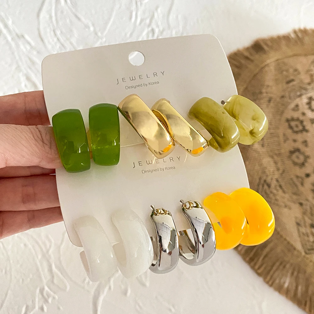 Mode Trendy Acryl Legierung Tropfen Ohrring Sets für Frauen Koreanische Geometrie Bunte Acryl B...
