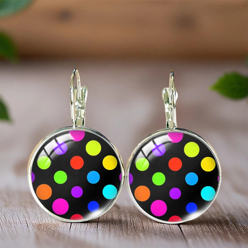 2025 neue Mode Farbe Polka Dots Ohrclip Runde Ohrring Glas Cabochon Kunst gedruckt Schmuck