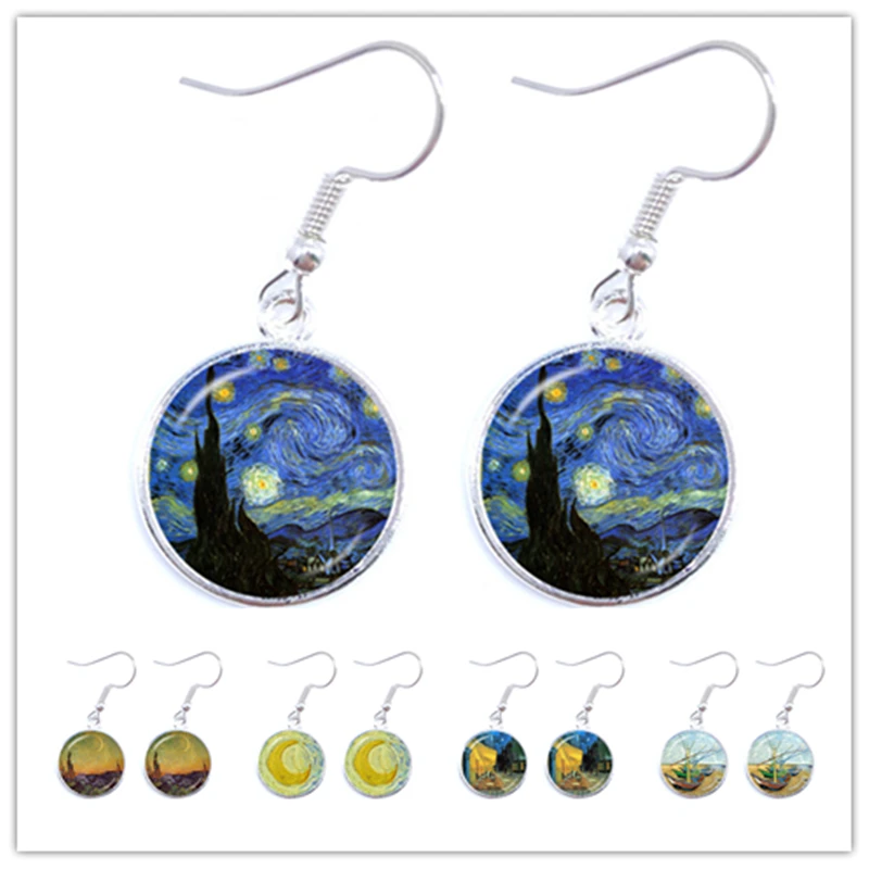 Mode Silber Farbe Einfache Stil Ohrringe Van Gogh Berühmte Künstler Sternennacht Tropfen O...