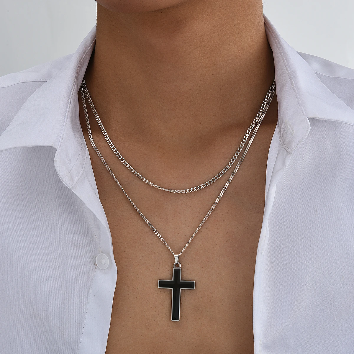 2 stücke Edelstahl Kreuz Anhänger Halskette Set für Männer Frauen Punk Minimalis...