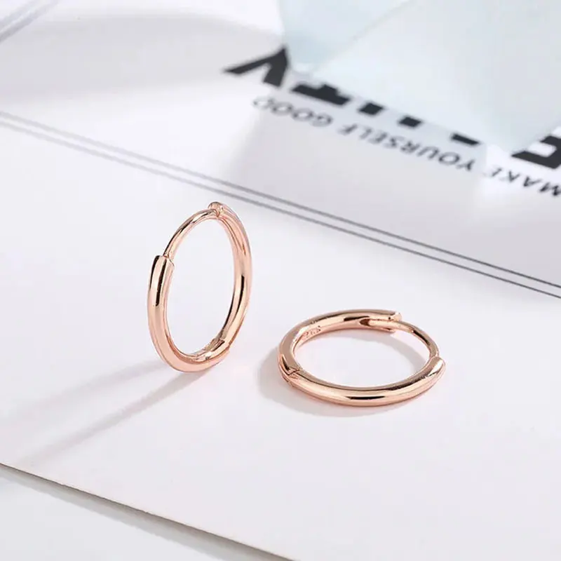 585 lila vergoldet 14k Rose Gold glänzend Mode Reifen Ohrringe für Frauen minimalist ische...