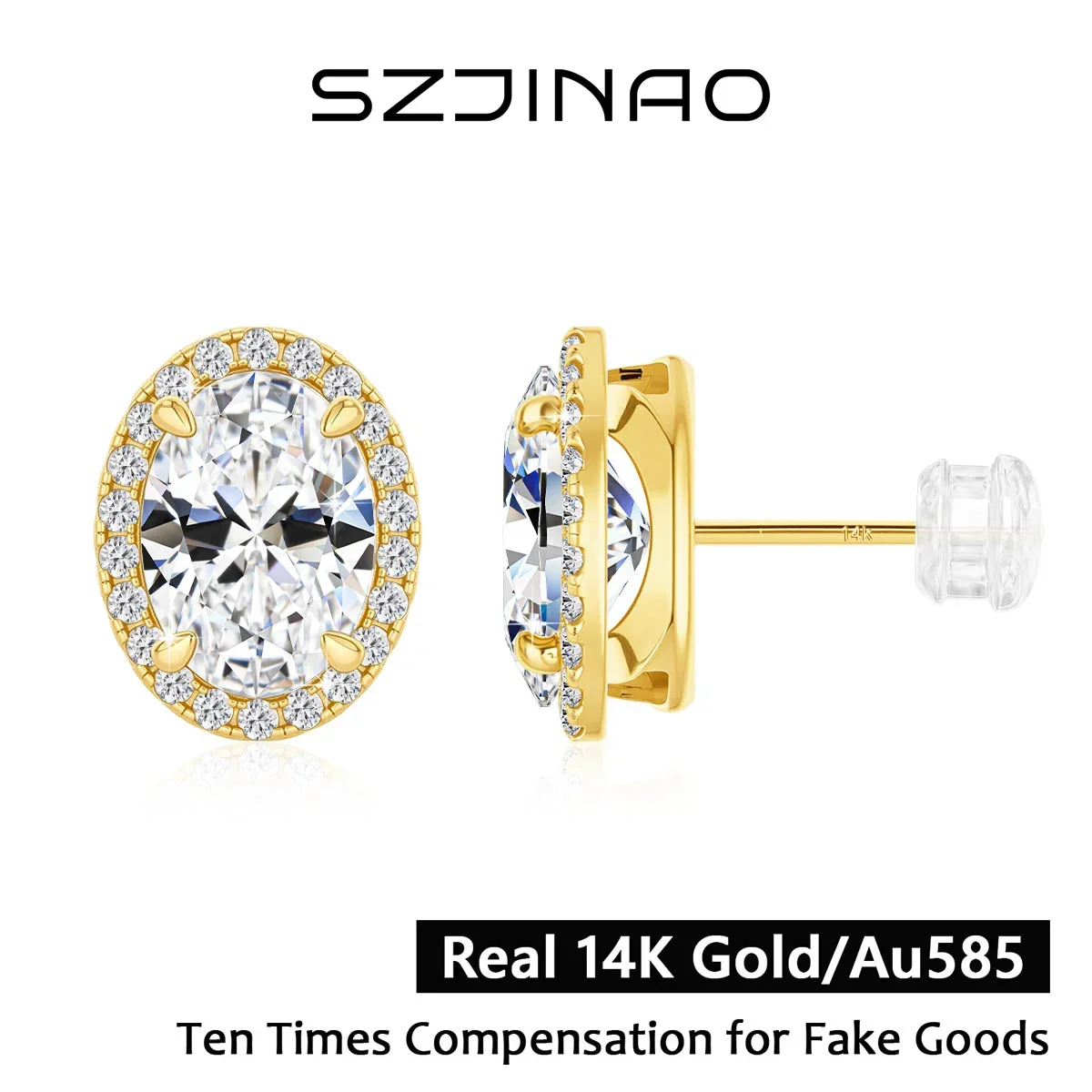 Au585 D Farbe Moissanit Ohrstecker für Frauen 14K Gold Luxus Eiförmiger Diamant Ohrstecker...