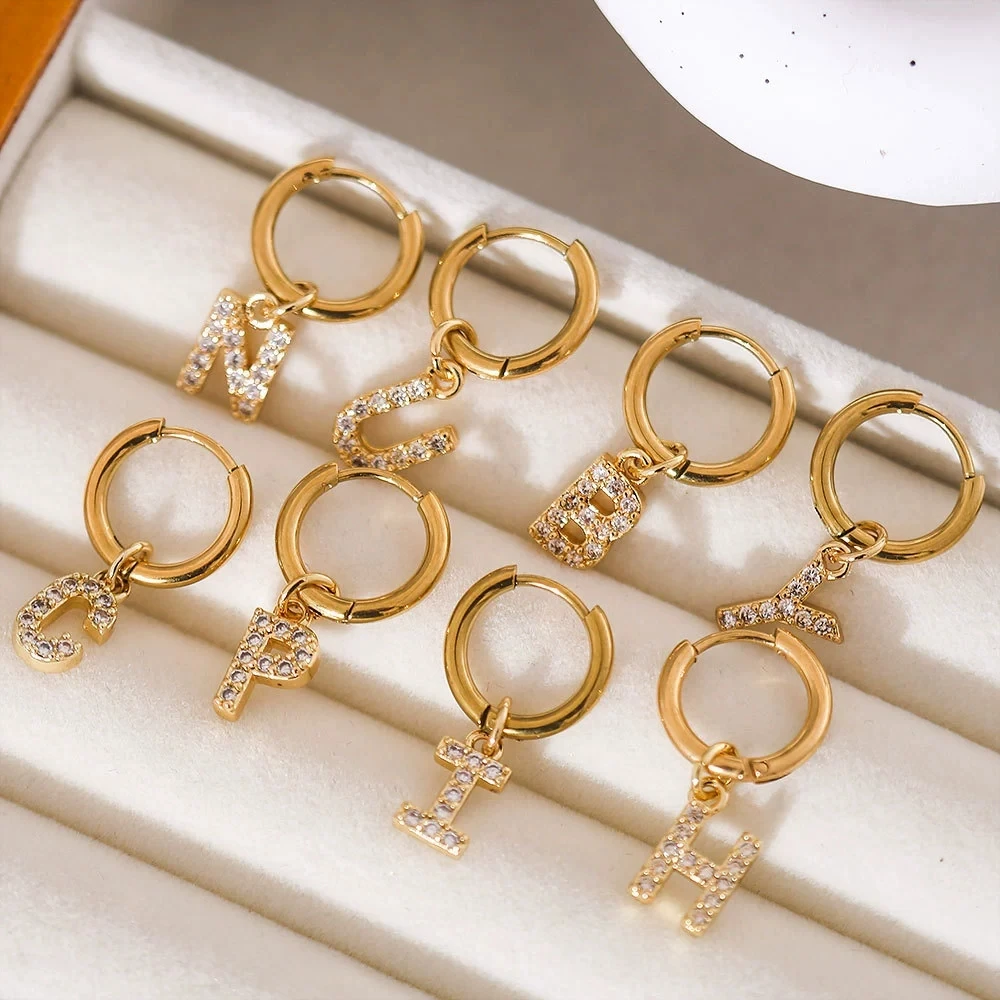 Englische Buchstaben-Anfangsohrringe, 18 Karat vergoldete Ohrringe, Edelstahl, Mikro-Zirkon-Buchstab...