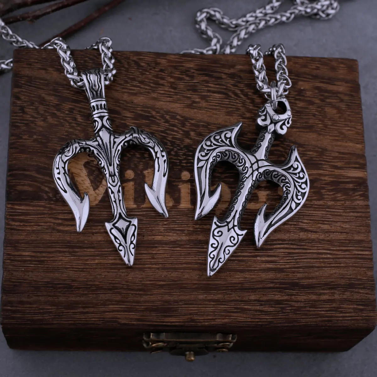 316L Edelstahl Griechische Mythologie Poseidon Dreizack Halskette M...