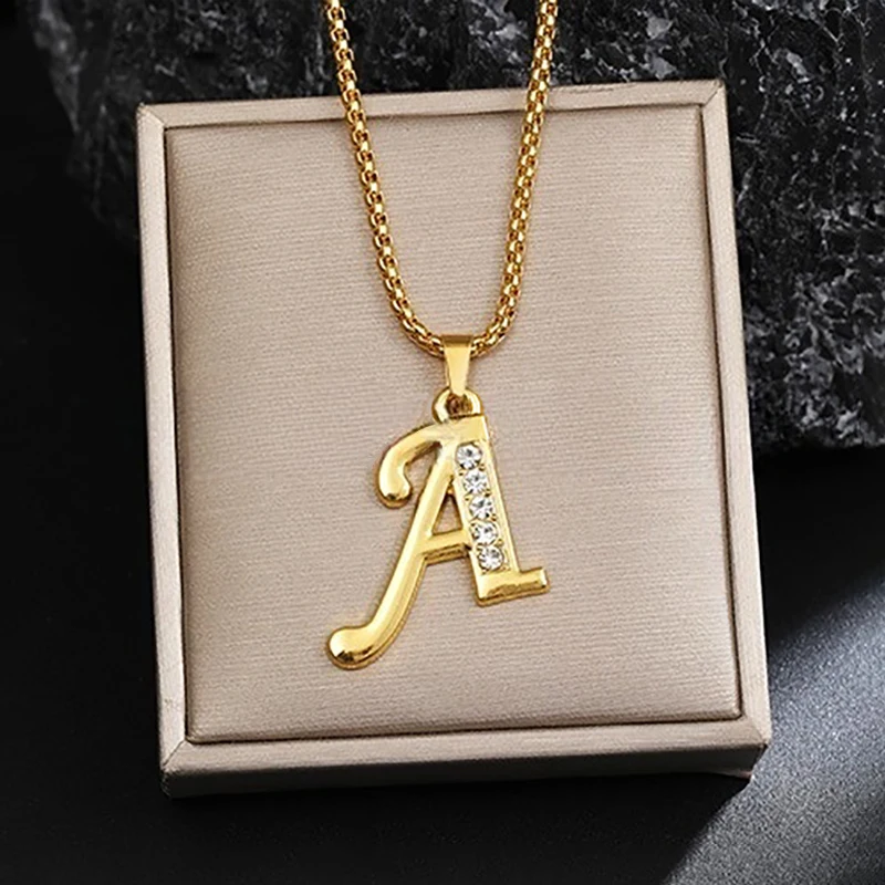 Glänzende Strass A-Z Buchstaben Halskette Alphabet Initial Anhänger Edelstahl Frauen M&aum...