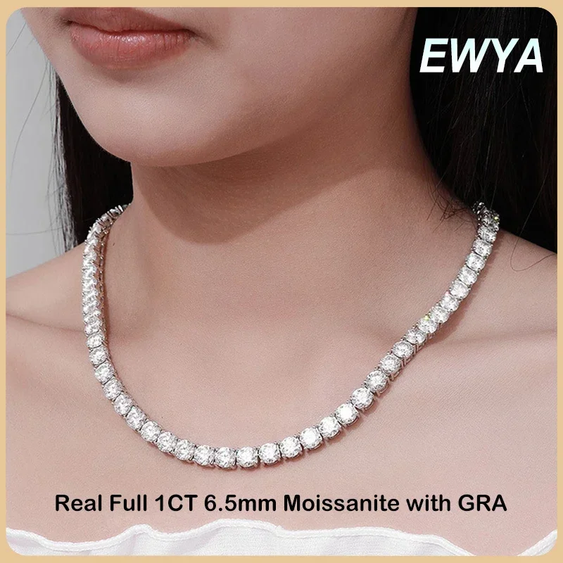Ewya Luxus echte d Farbe 6,5mm 1ct volle Moissan ite Diamant Tennis Halskette für Frauen Dame s...