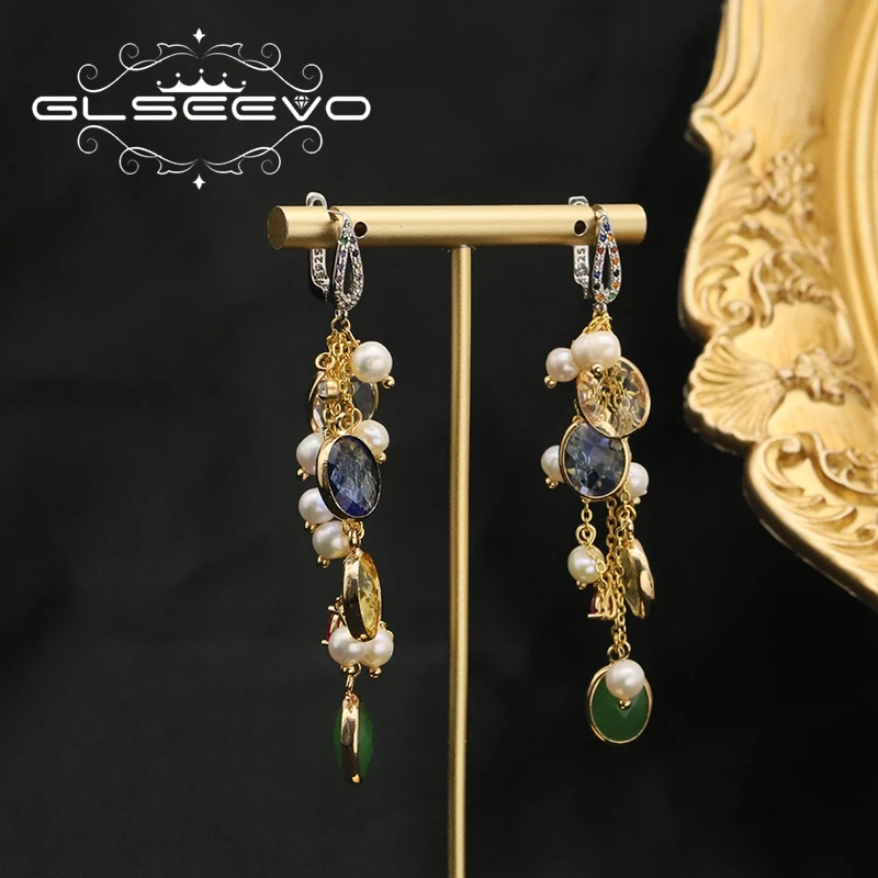 Glseevo lange Quaste Perle Tropfen Ohrringe Kristall Strass baumeln Ohrringe für Frauen Hochzei...