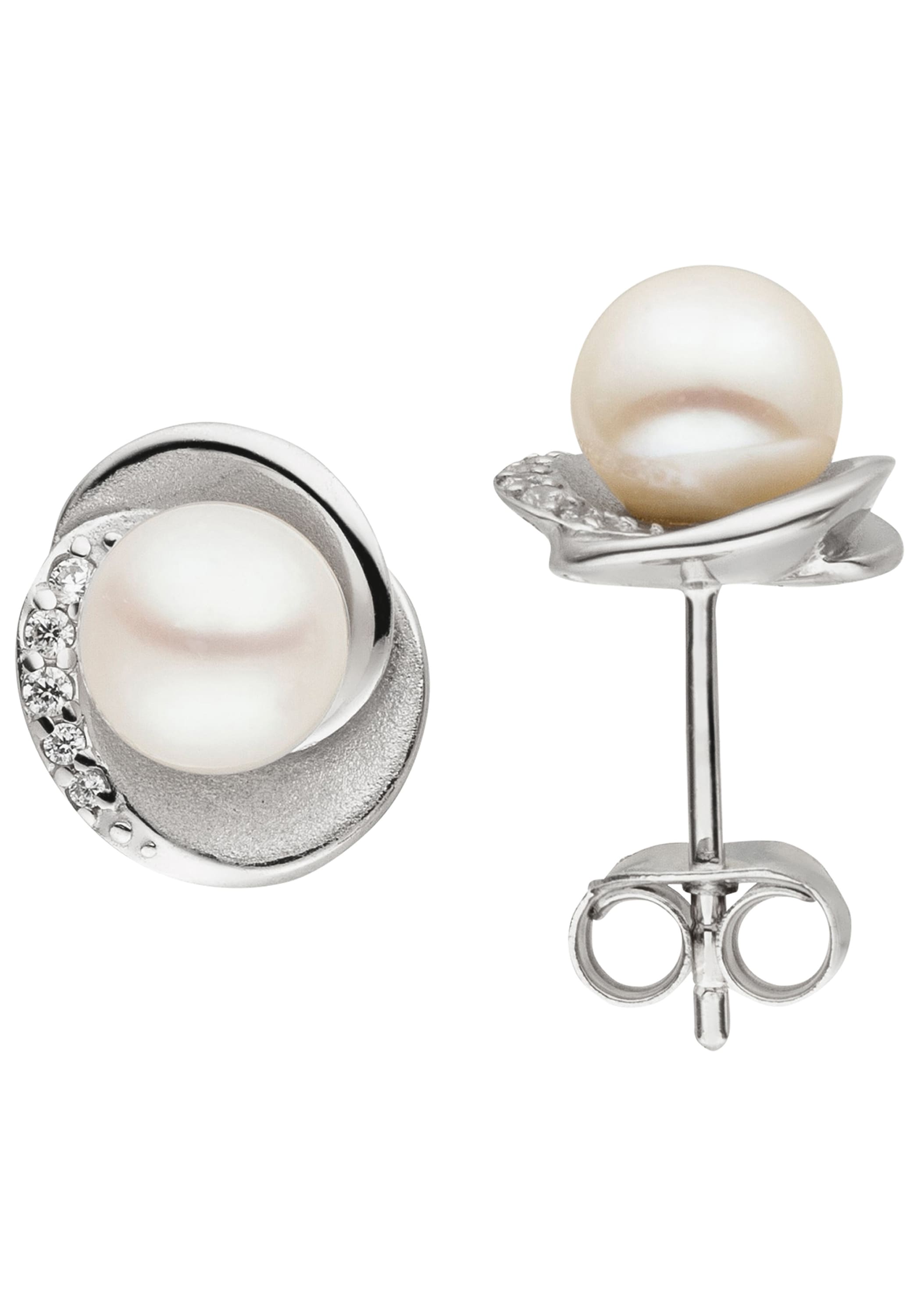 1 Paar Boutons aus 925 Sterlingsilber, rhodiniert, mit 2 Süßwasser-Zuchtperlen und 2 Zirk...