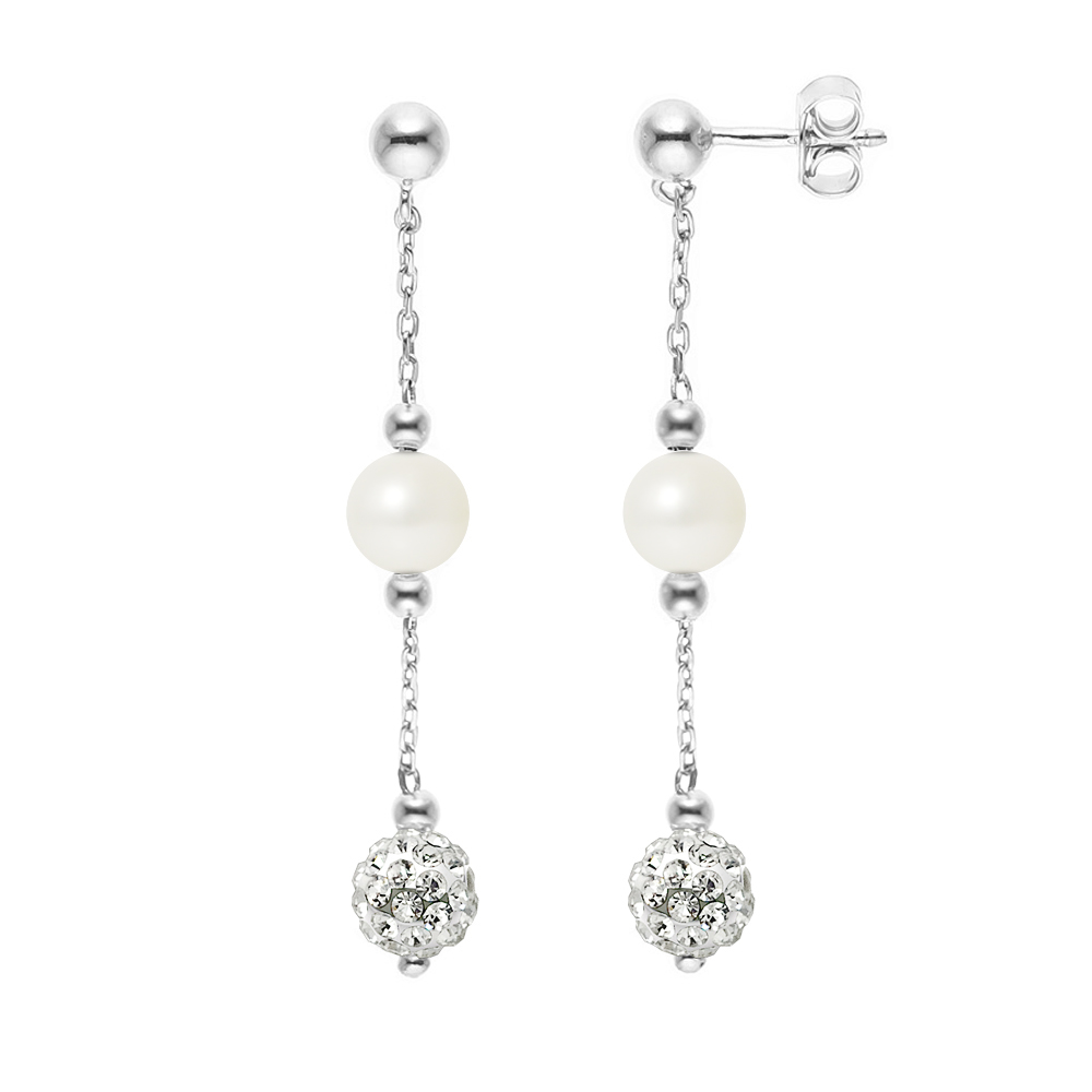 Anhänger Ohrringe Kugeln mit echtem Kristall weiß und Perlen Kultur Spaziergänger Sy...