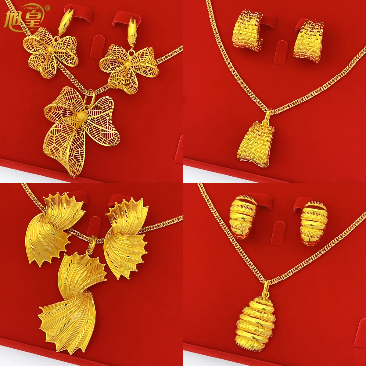Xuhuang Dubai 24 Karat Gold Farbe Kupfer Schmuck Set für Fraue...