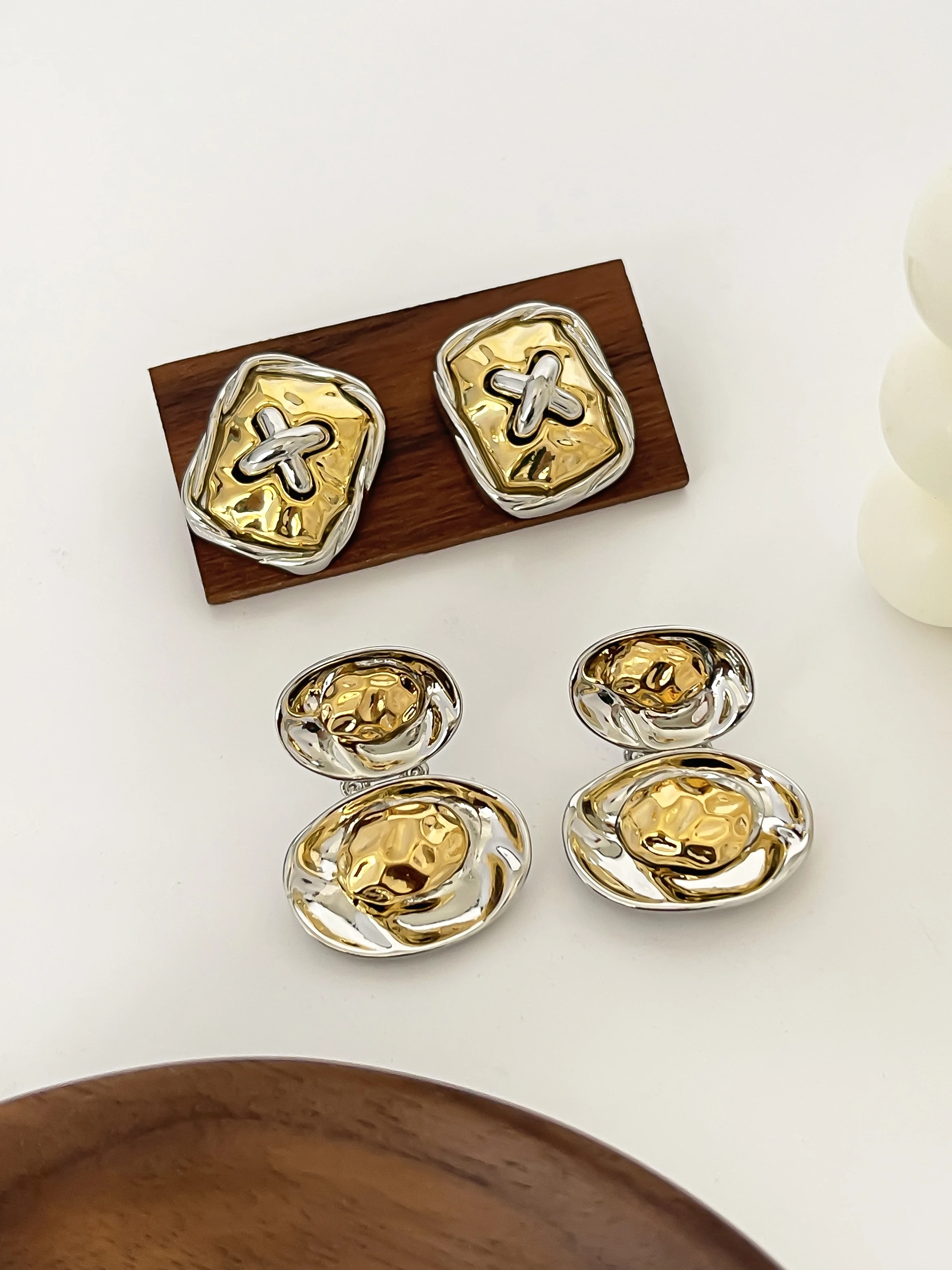 Peri'sbox Vintage klobige doppelte Farbe geometrische quadratische ovale gehämmerte Ohr stecker...