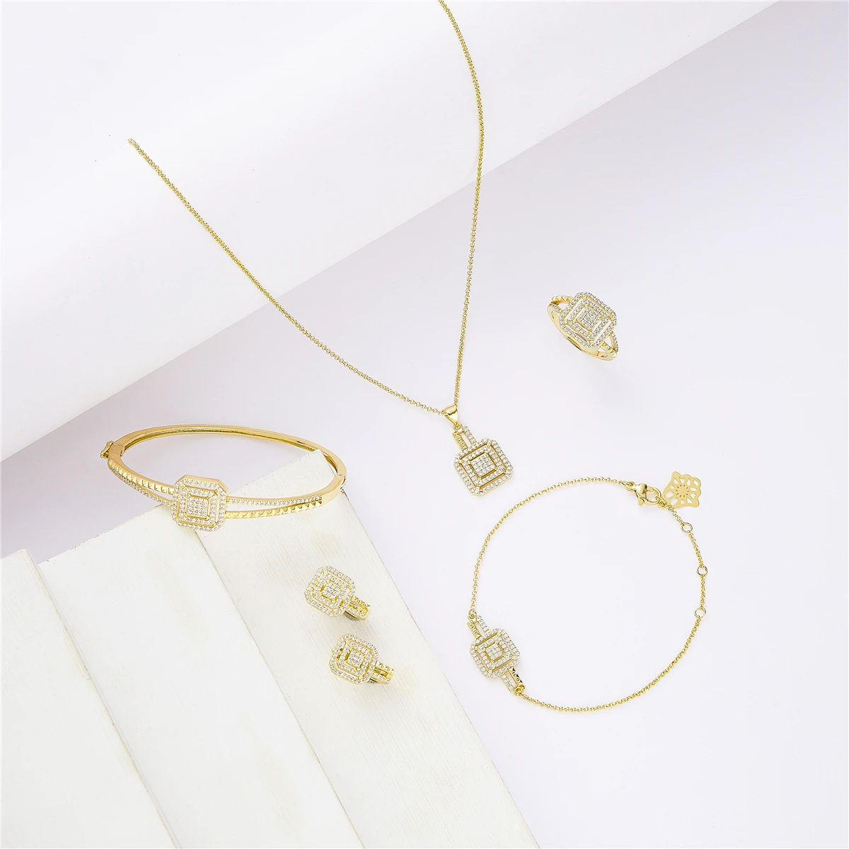 Hochzeit Gold Quadrat Bohrer Kristall Schmuck-Set Für Frauen M...