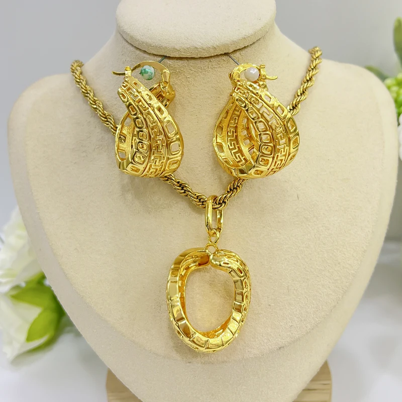 Neue Dubai 24 Karat Gold Farbe Kupfer Schmuck Set für Frauen indischen zweiteiligen Schmuck Geo...