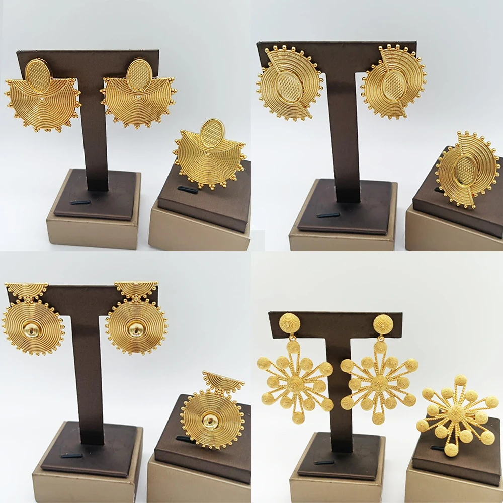 18 Karat vergoldetes Schmuckset für Frauen Dubai Braut Hochzeit trend ige Ohrringe und Ringe af...